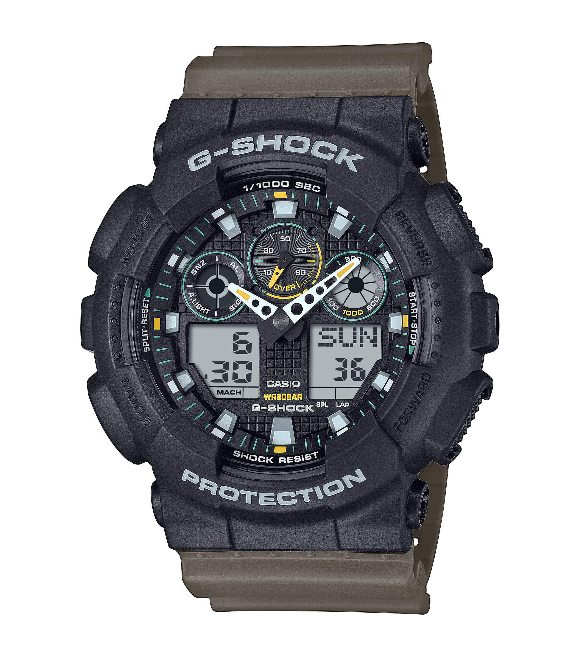 G-SHOCK Dual Time Chronograph Olive Green Rubber Strap GA-100TU-1A3ER