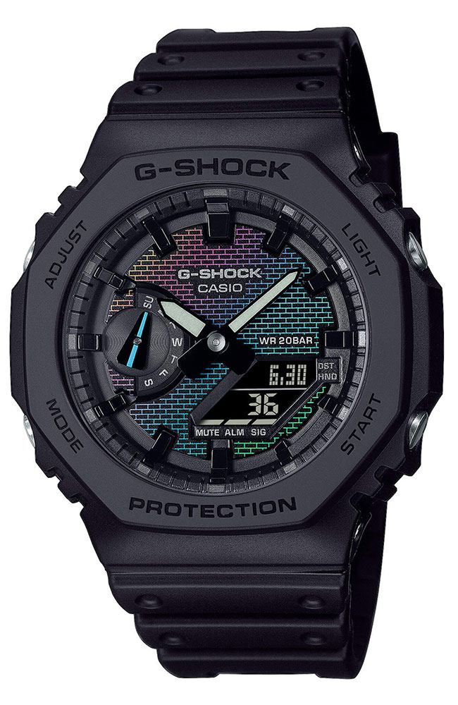 G-SHOCK Rainbow Brick Wall Dual Time Chronograph Black Bio-based Resin Strap GA-2100RW-1AER