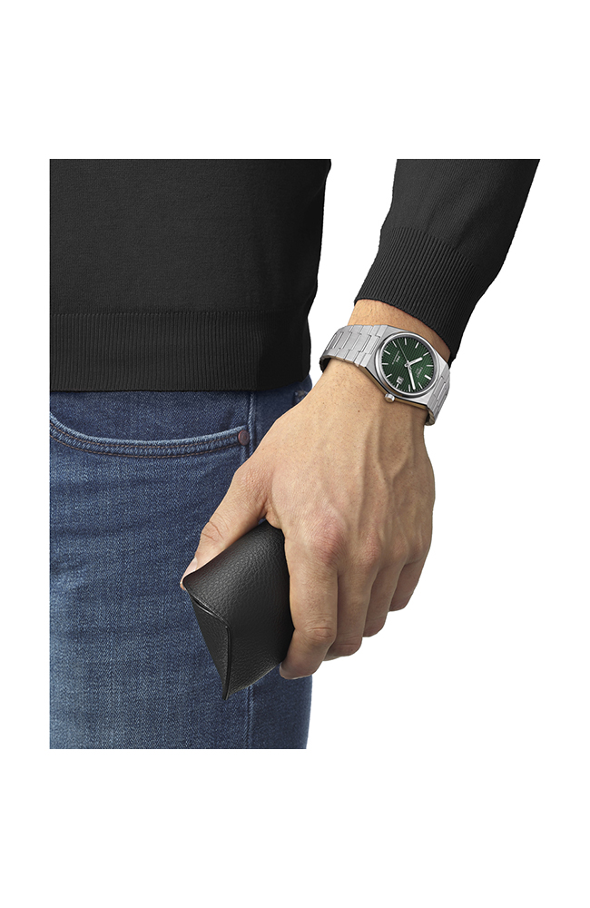 Ανδρικό Ρολόι Tissot Ελβετικό με αυτόματο μηχανισμό από ανοξείδωτο ατσάλι με πράσινο καντράν και μπρασελέ.