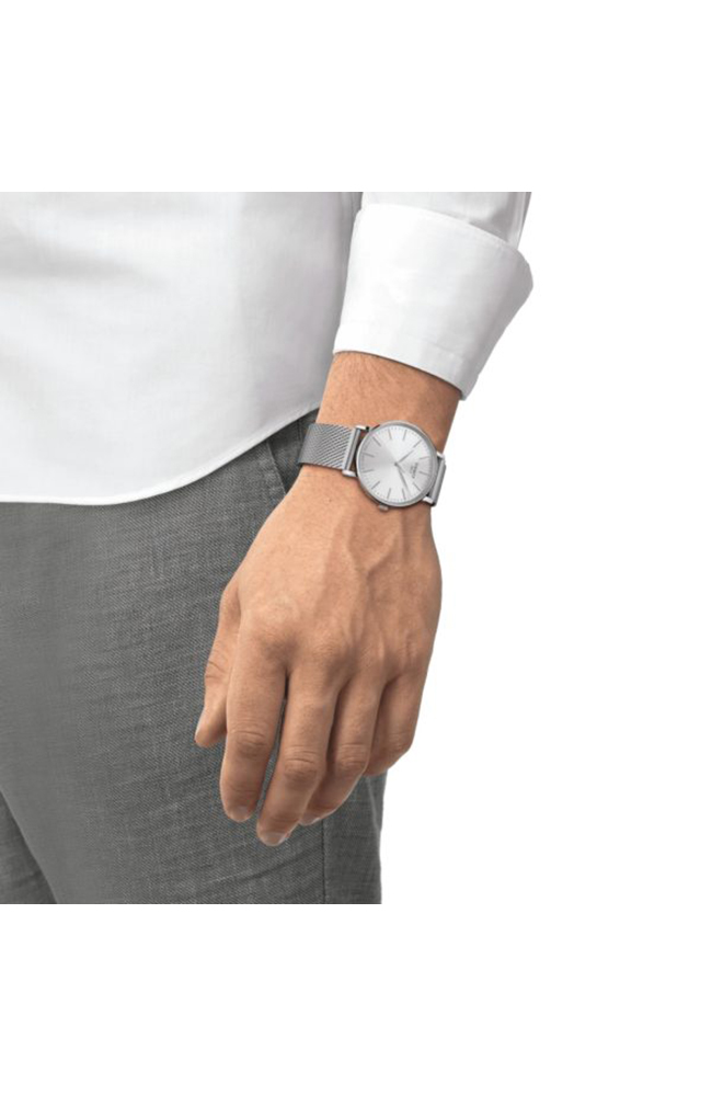 Unisex Ρολόι Tissot Ελβετικό από ανοξείδωτο ατσάλι με ασημί καντράν και μπρασελέ.