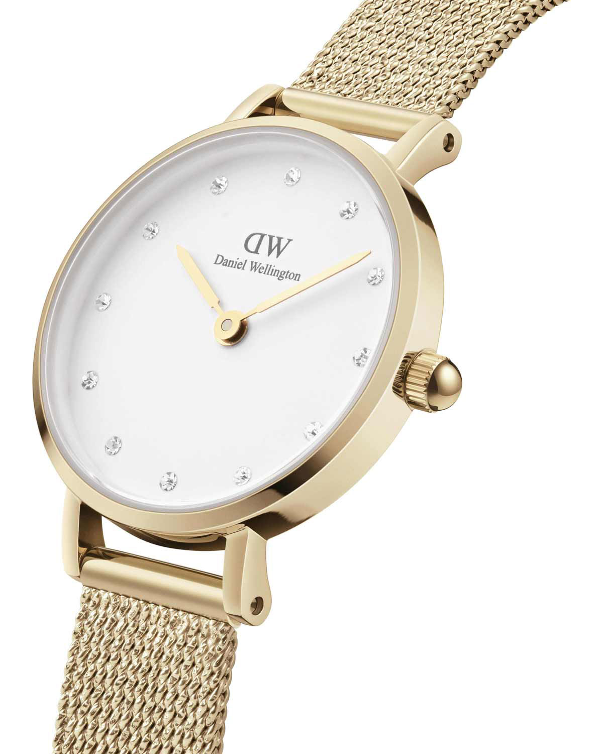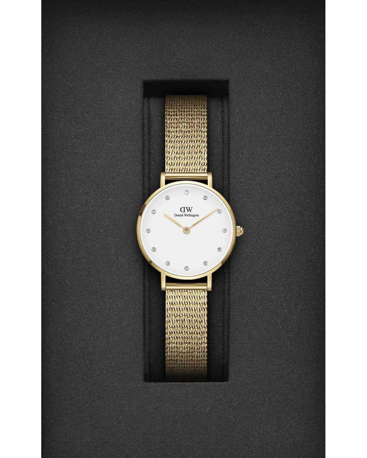 Γυναικειο μινιμαλ ρολοϊ με επιχρυσωμενο ψαθωτο μπρασελε και πετρες στο καντραν