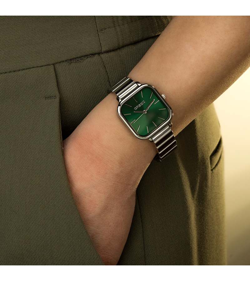 Γυναικείο ρολόι Gregio από ανοξείδωτο ατσάλι με πράσινο καντράν και μπρασελέ.