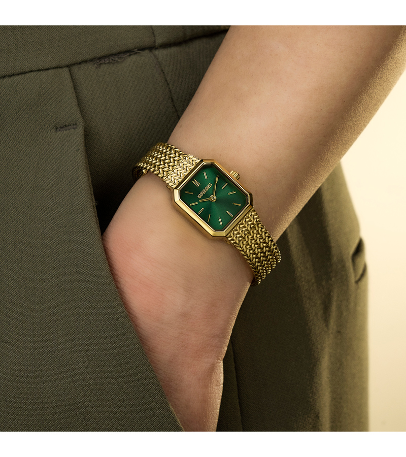 Γυναικείο ρολόι Gregio από ανοξείδωτο ατσάλι με πράσινο καντράν και μπρασελέ.