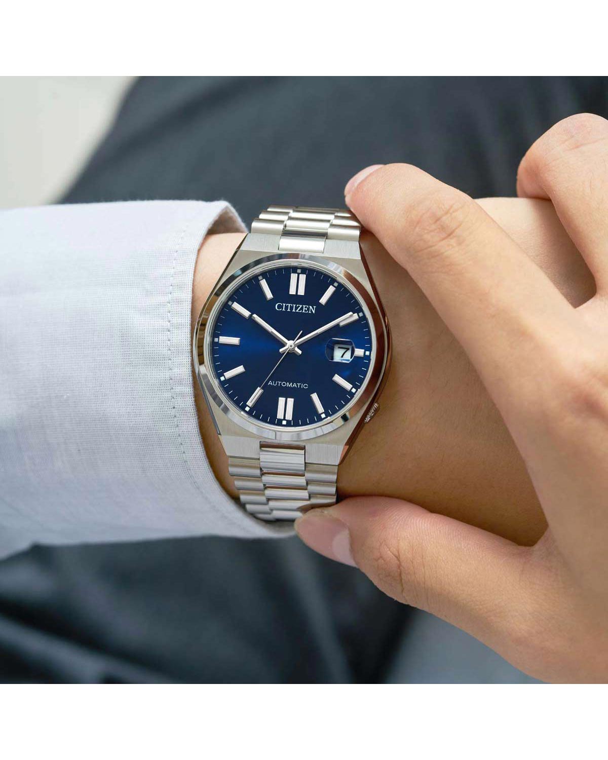 Ανδρικό ρολόι Citizen με αυτόματο μηχανισμό από ανοξείδωτο ατσάλι με μπλε καντράν