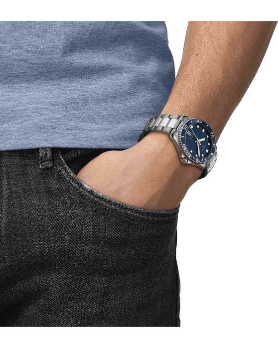 Ανδρικό Ρολόι Tissot Ελβετικό από ανοξείδωτο ατσάλι με μπλε καντράν και μπρασελέ.