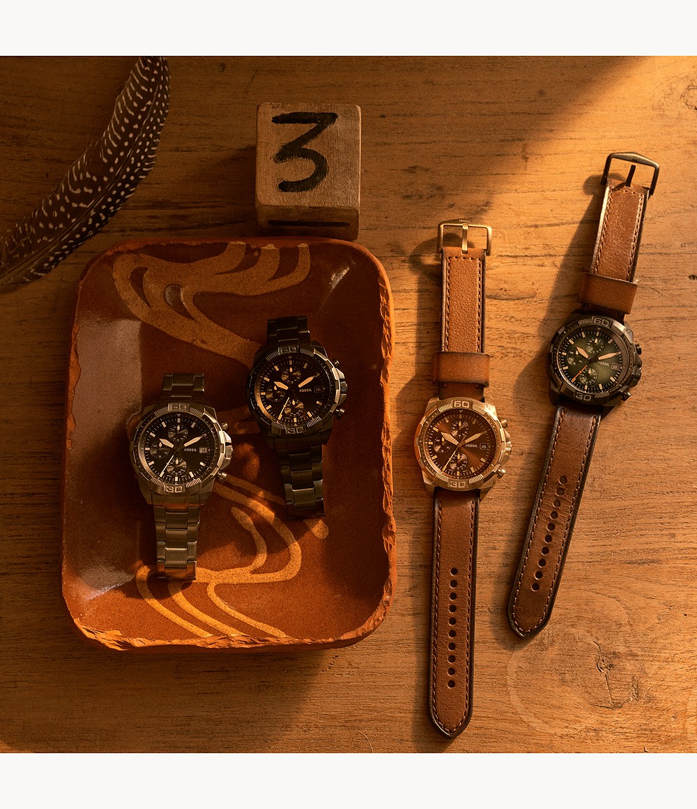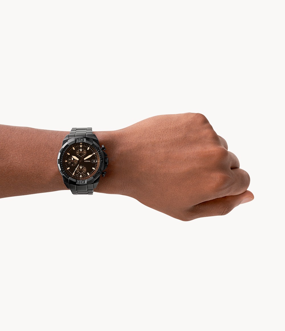 Ανδρικο σπορ ρολόι της FOSSIL με μαυρο ατσαλινο μπρασελε και δυναμικο design