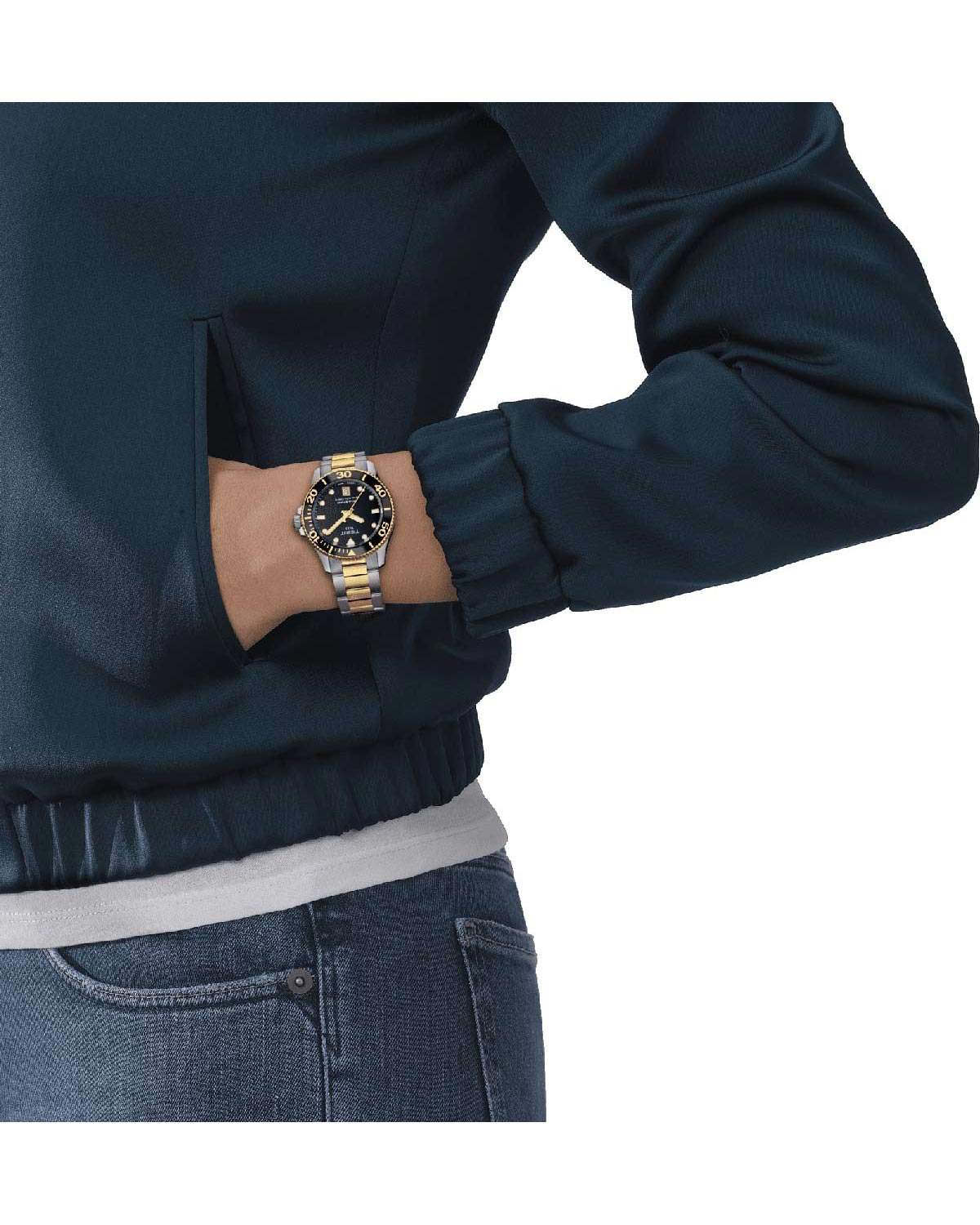 Sport Ρολόι Tissot Ελβετικής κατασκευής από ανοξείδωτο ατσάλι με μαύρο καντράν και μπρασελέ.