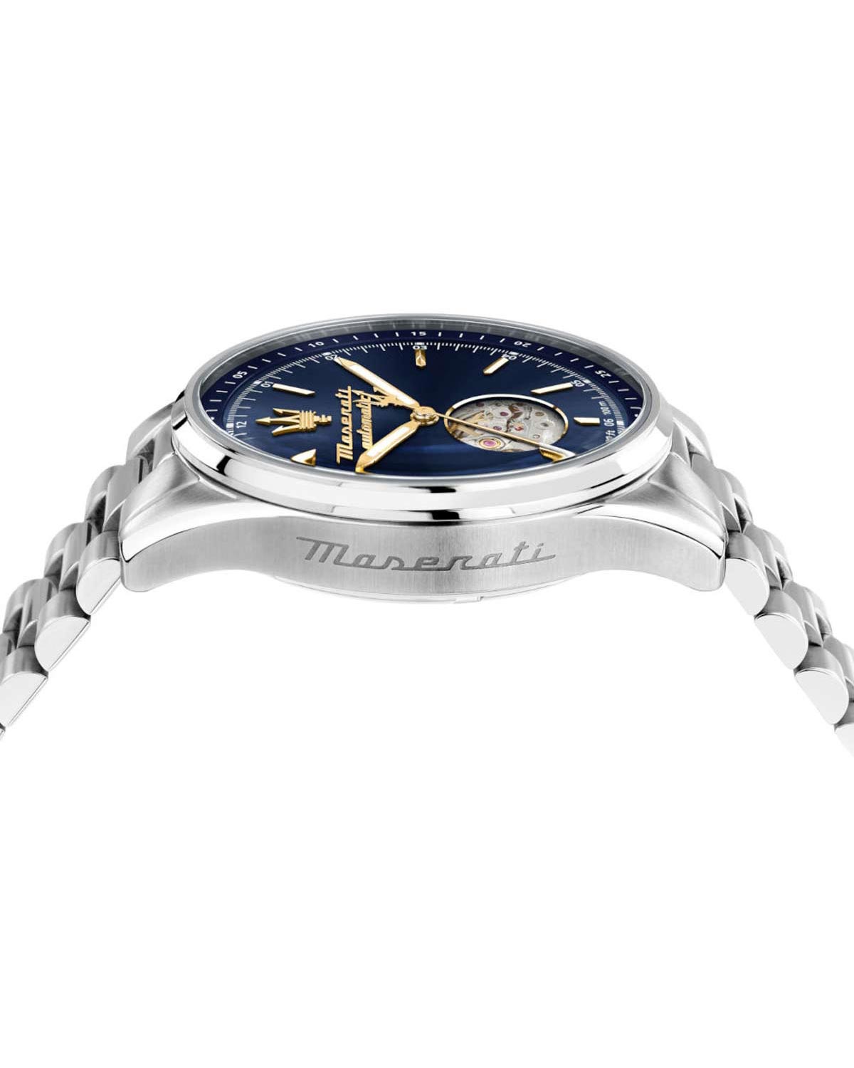 Ανδρικό ρολόι MASERATI SORPASSO R8823124002 διαμέτρου 42mm, με αυτόματο μηχανισμό, μπλε καντράν, κάσα και μπρασελέ από ανοξείδωτο ατσάλι.