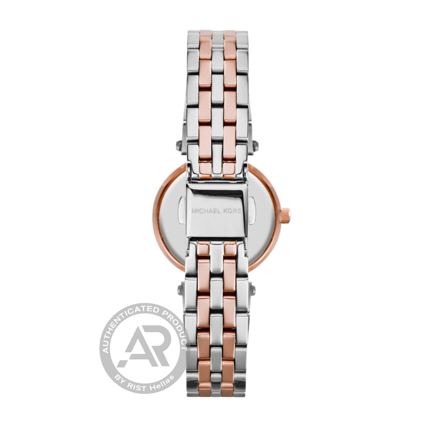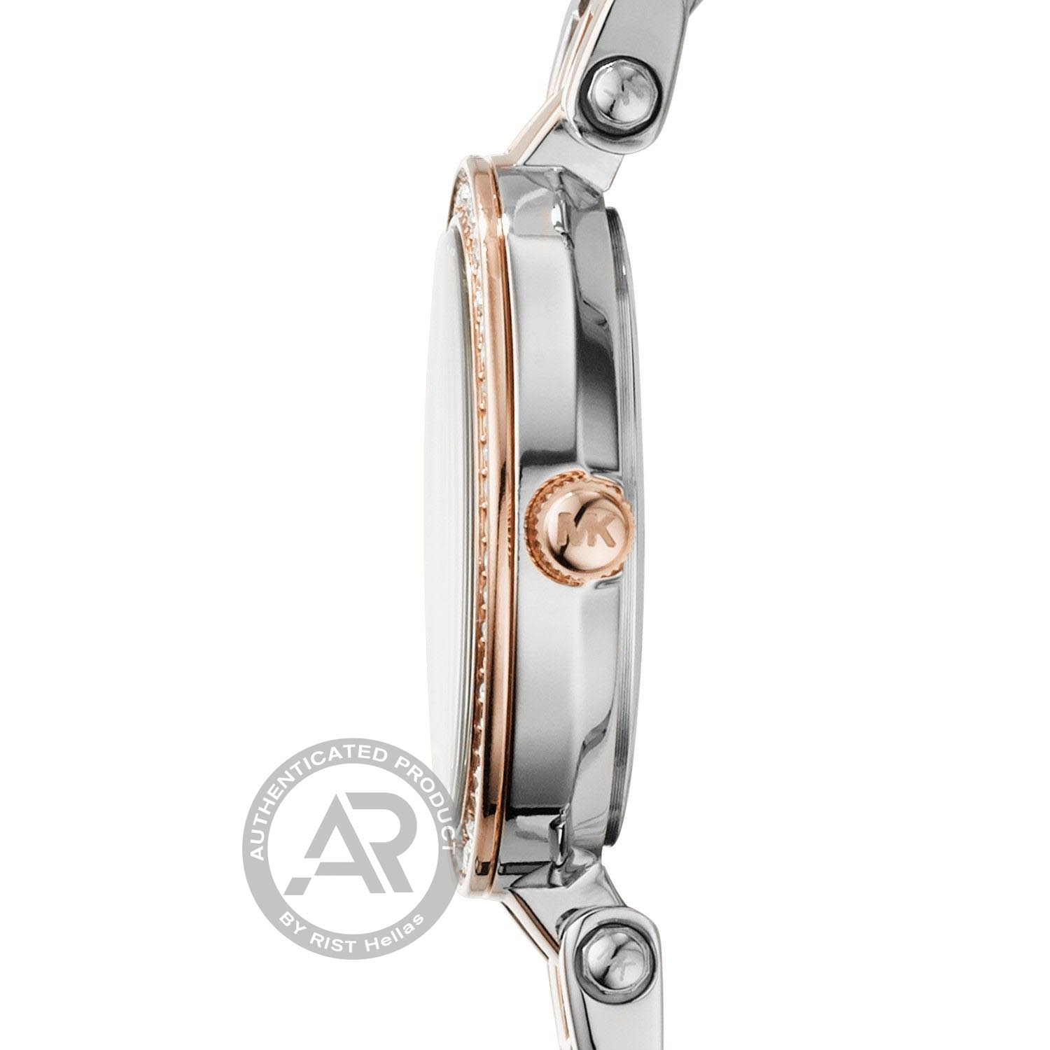 Γυναικείο ρολόι Michael Kors από ανοξείδωτο ατσάλι με ασημί καντράν και δίχρωμο μπρασελέ.