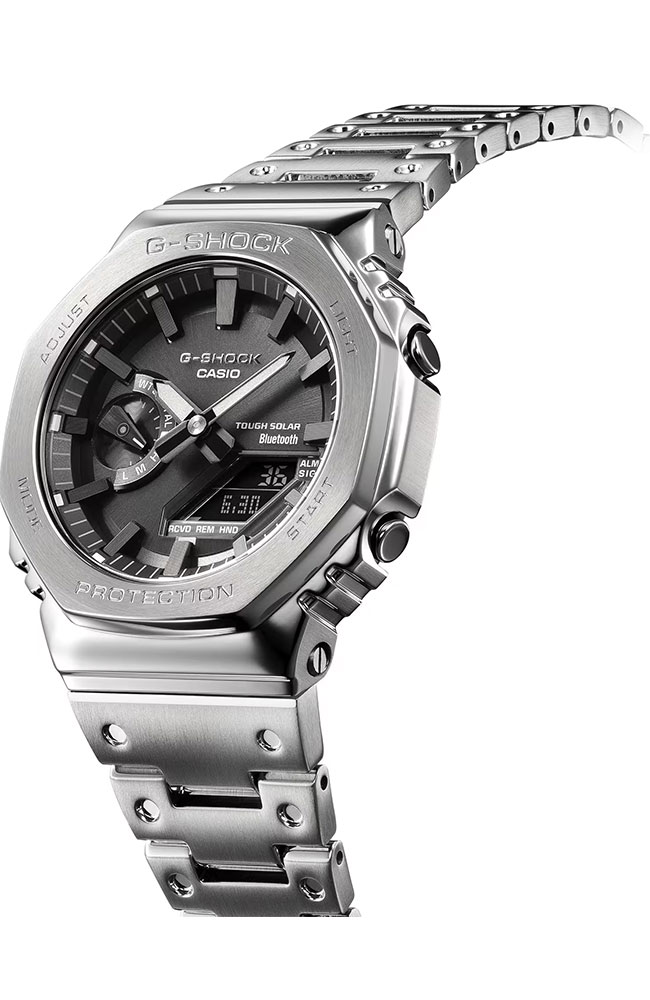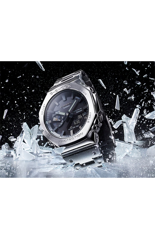Η συνεχώς εξελισσόμενη εταιρία Casio δημιουργεί ρολόγια με πρωτότυπο design και χαρακτηριστικά τελευταίας τεχνολογίας, όπως είναι το νέο GM-B2100D-1AER με μπρασελέ από ανοξείδωτο ατσάλι και μεταλλική κάσα από καουτσούκ ενισχυμένο από ίνες άνθρακα με επίστρωση από ανοξείδωτο ατσάλι. Διαθέτοντας λειτουργίες τελευταίας τεχνολογίας όπως, φωτισμός οθόνης με LED, ανθεκτικό στους κραδασμούς, λειτουργία παγκόσμιας ώρας, χρονόμετρο , 5 ημερήσια ηχητικά σήματα και αδιάβροχο στα 200 μέτρα, το κατατάσσουν στα πιο εξελιγμένα ρολόγια. • Τεχνολογία Bluetooth? Smart • Συγχρονισμός με το smartphone για ένδειξη ακριβούς ώρας • Διπλός φθορίζων φωτισμός οθόνης • Ανθεκτικό στους κραδασμούς • Ηλιακή φόρτιση • Οθόνη με επίστρωση Neobrite • Λειτουργία παγκόσμιας ώρας • Χρονόμετρο – 1/100 δευτ. – 24 ώρες • Χρονόμετρο αντίστροφης μέτρησης – 1/1 λεπτό – 1 ώρα • 5 ημερήσια ηχητικά σήματα • Ένδειξη της ημέρας σε πολλές γλώσσες • Ενεργοποίηση/Απενεργοποίηση ηχητικού σήματος κουμπιών • Λειτουργία μετακίνησης των δεικτών • Λειτουργία εύρεσης τηλεφώνου • Αυτόματο ημερολόγιο • 12/24-ωρη ένδειξη της ώρας • Κρύσταλλο από ορυκτό γυαλί • Κάσα από ανοξείδωτο ατσάλι κι ανθρακόνημα • Κάσα με επίστρωση IP • Βιδωτό καπάκι • Μπρασελέ από συμπαγές ανοξείδωτο ατσάλι • Μπρασελέ με επίστρωση IP • Κούμπωμα ασφαλείας • Δείκτης επιπέδου μπαταρίας • Ταξινόμηση αντοχής στο νερό (πίεση 20 bar) •Κάσα 44,4 mm
