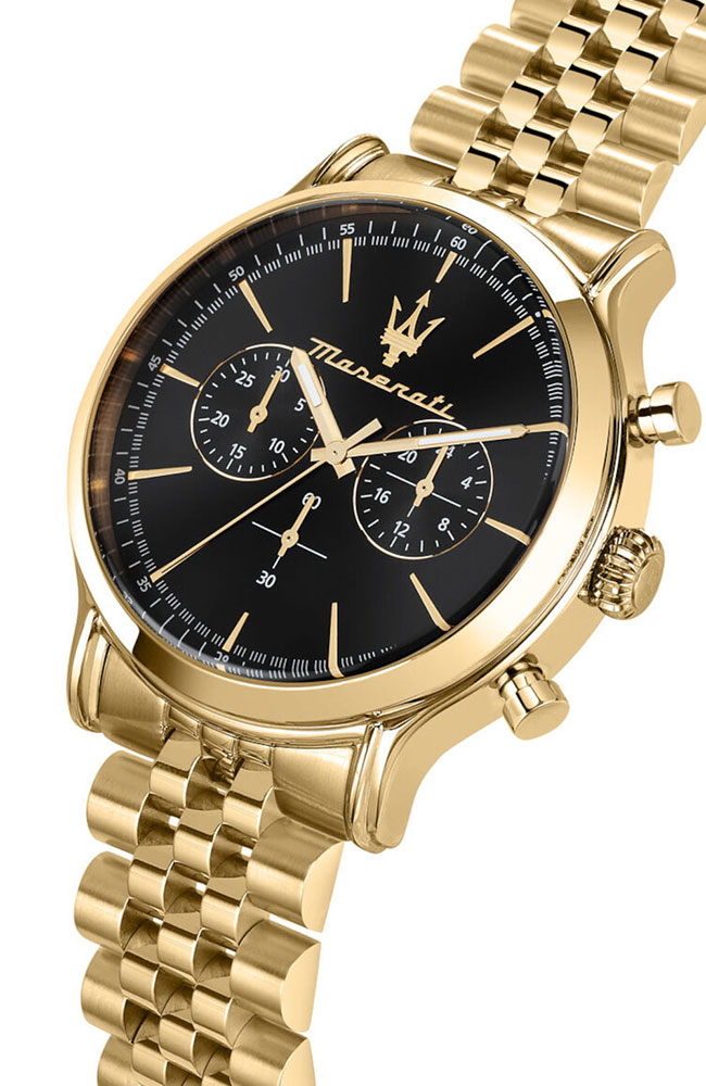 Αντρικό ρολόι MASERATI EPOCA R8873618024 διαμέτρου 42mm, με μηχανισμό QUARTZ χρονογράφου ακριβείας, μαύρο καντράν, κάσα και μπρασελέ από ανοξείδωτο ατσάλι.