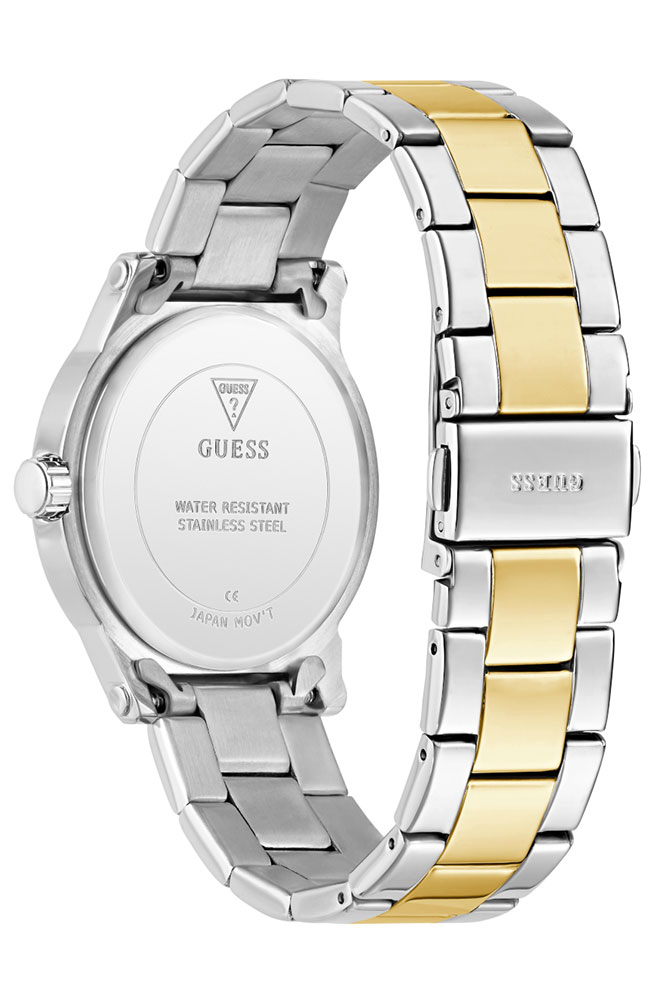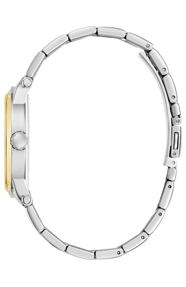Γυναικείο ρολόι Guess από ανοξείδωτο ατσάλι με πρασίνο καντράν, πέτρες Ζιργκόν και μπρασελέ.