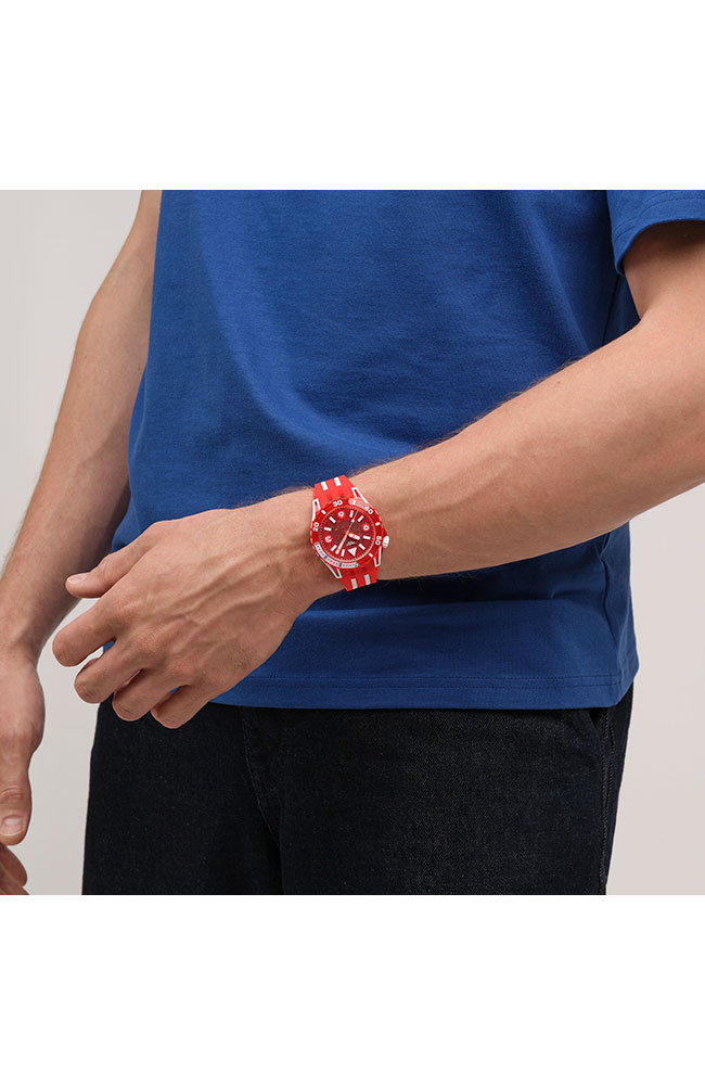 Ρολόι χειρός Swatch ελβετικής κατασκευής με διάφανο καντράν και καουτσούκ λουράκι