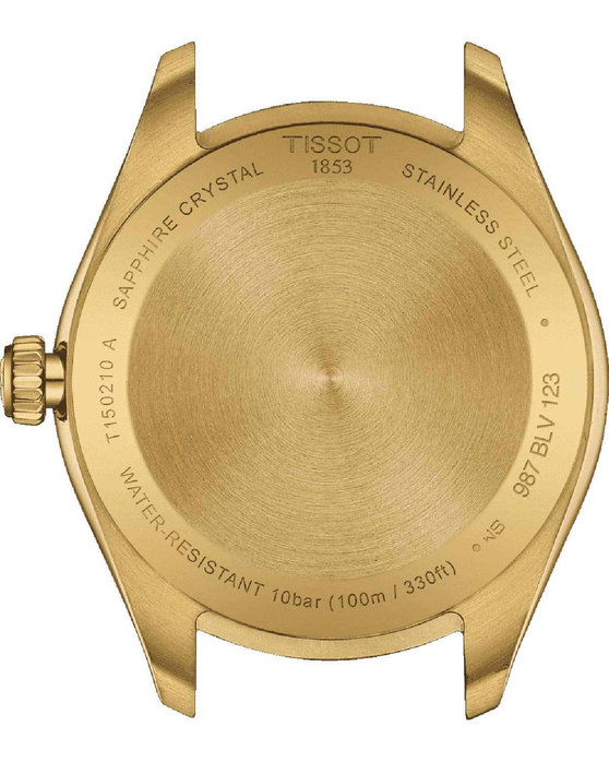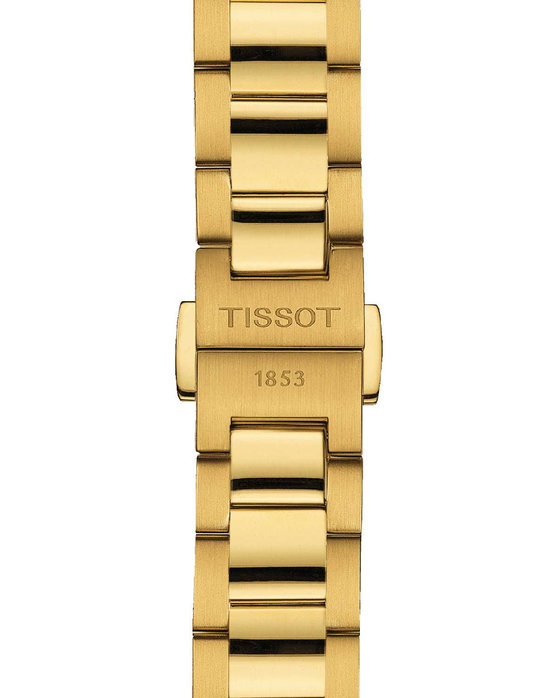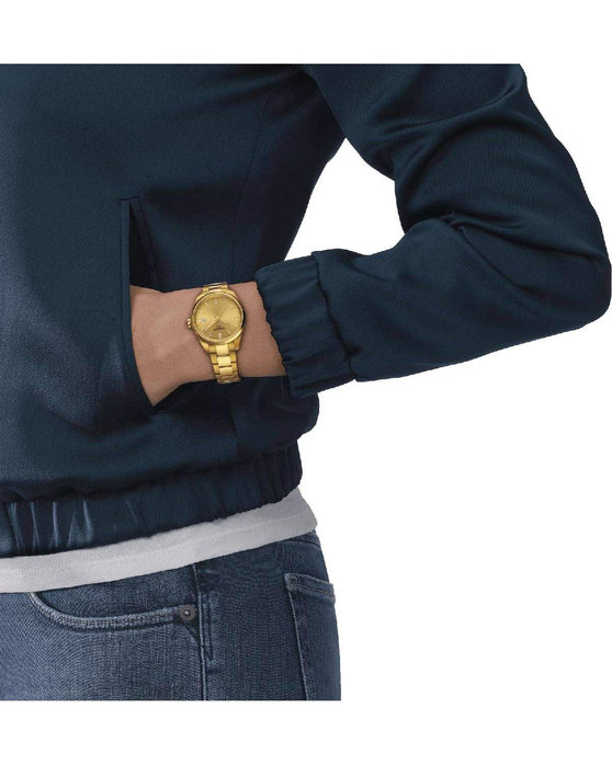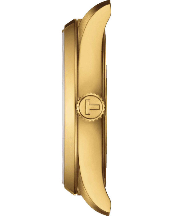 Γυναικείο Ρολόι Tissot Ελβετικής κατασκευής από ανοξείδωτο ατσάλι με χρυσό καντράν και μπρασελέ.