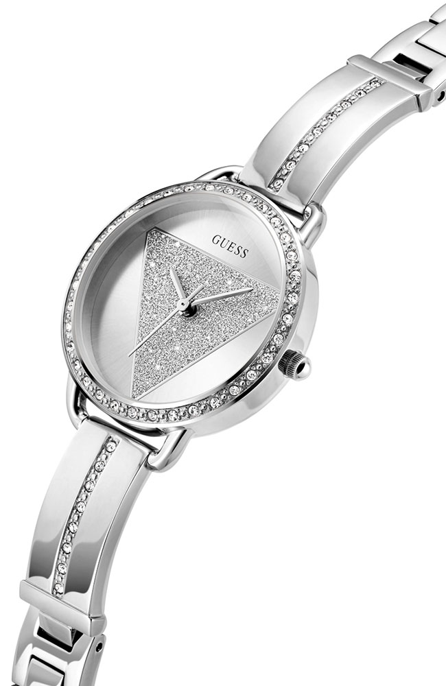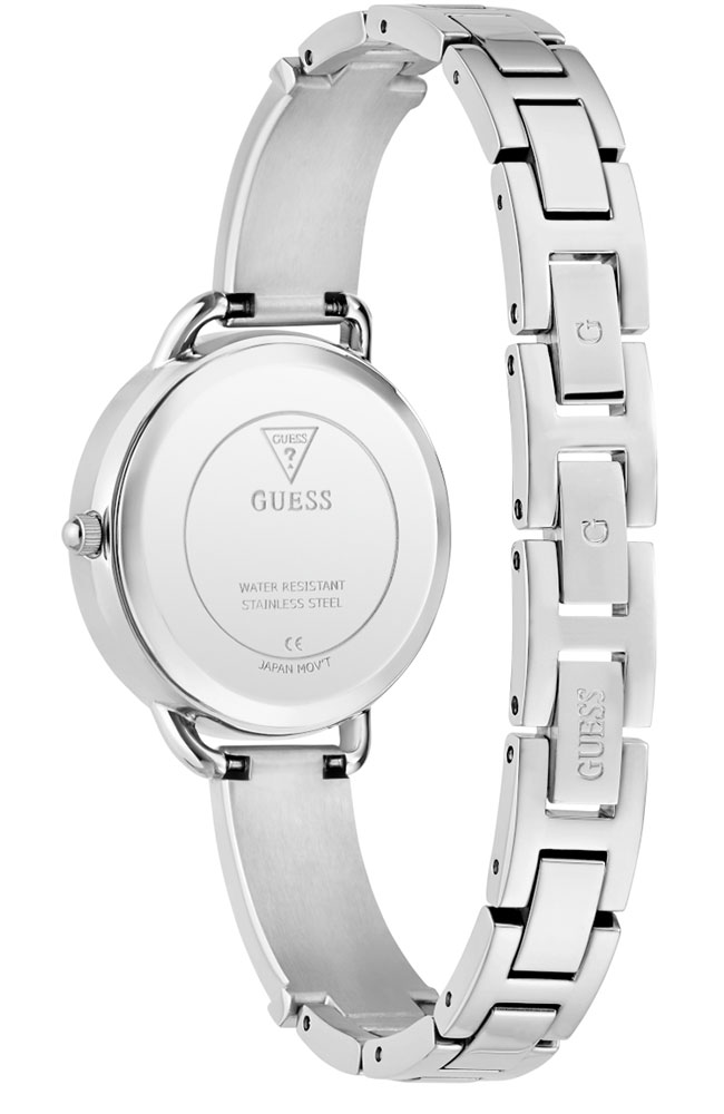 Γυναικείο ρολόι Guess από ανοξείδωτο ατσάλι με ασημί καντράν και μπρασελέ.