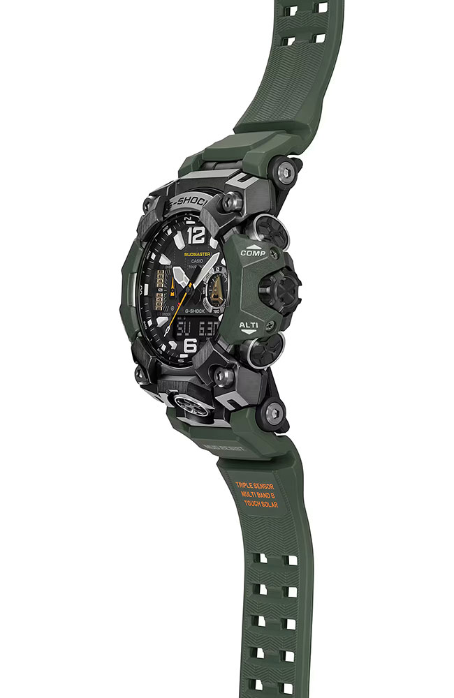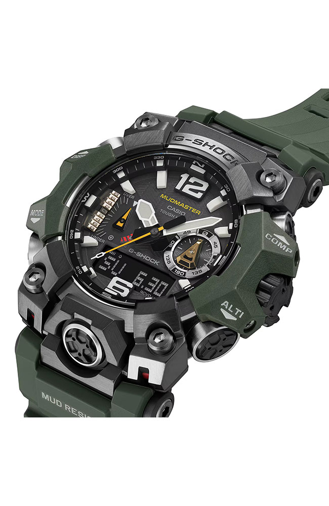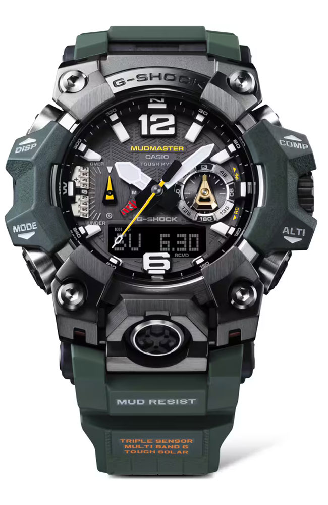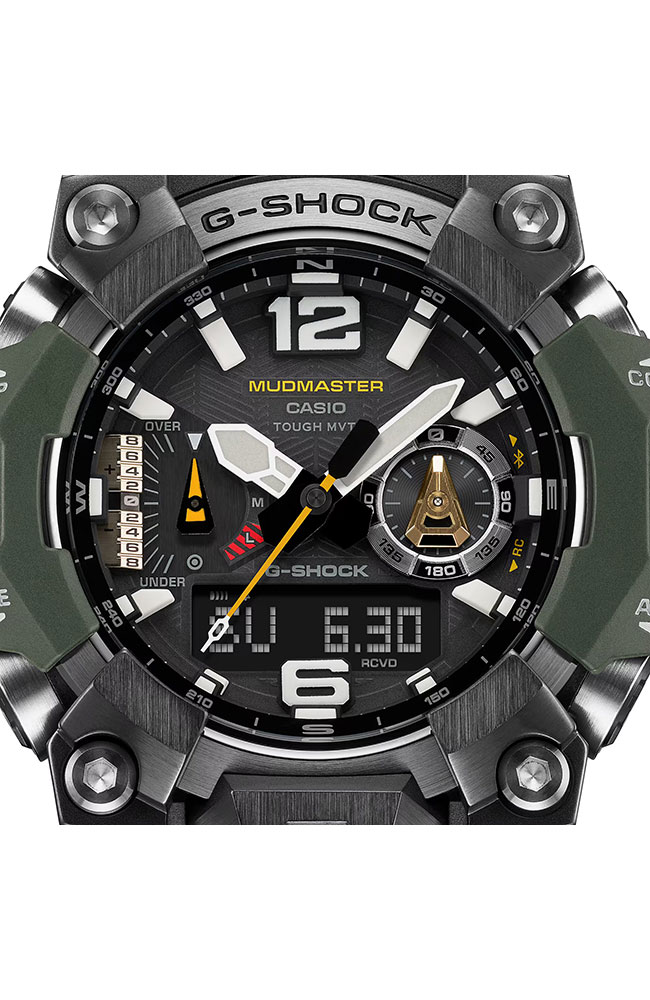 Ανθεκτικό G-Shock Mudmaster με ηλιακή φόρτιση, Bluetooth, ραδιοελεγχόμενη ακρίβεια, αισθητήρες πυξίδας, υψομέτρου και θερμοκρασίας, ιδανικό για απαιτητικές outdoor δραστηριότητες.